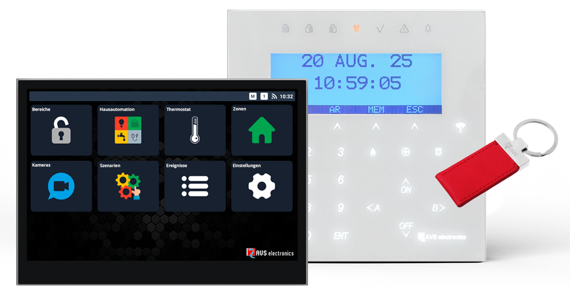 In Kombination mit den (Soft-)Touch-Bedienteilen A1000, T8 oder T10 ist die ULTRA die zukunftweisende und moderne Anlage für Privat- und Geschäftskunden. Steuerung und Schaltung kann per Leser und Transponder, PIN-Eingabe am Bedienteil, Funk-Handsender oder über die Smartphone/Tablet-App „myAVSAlarm“ flexibel erfolgen.